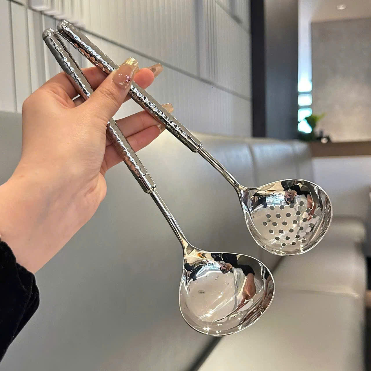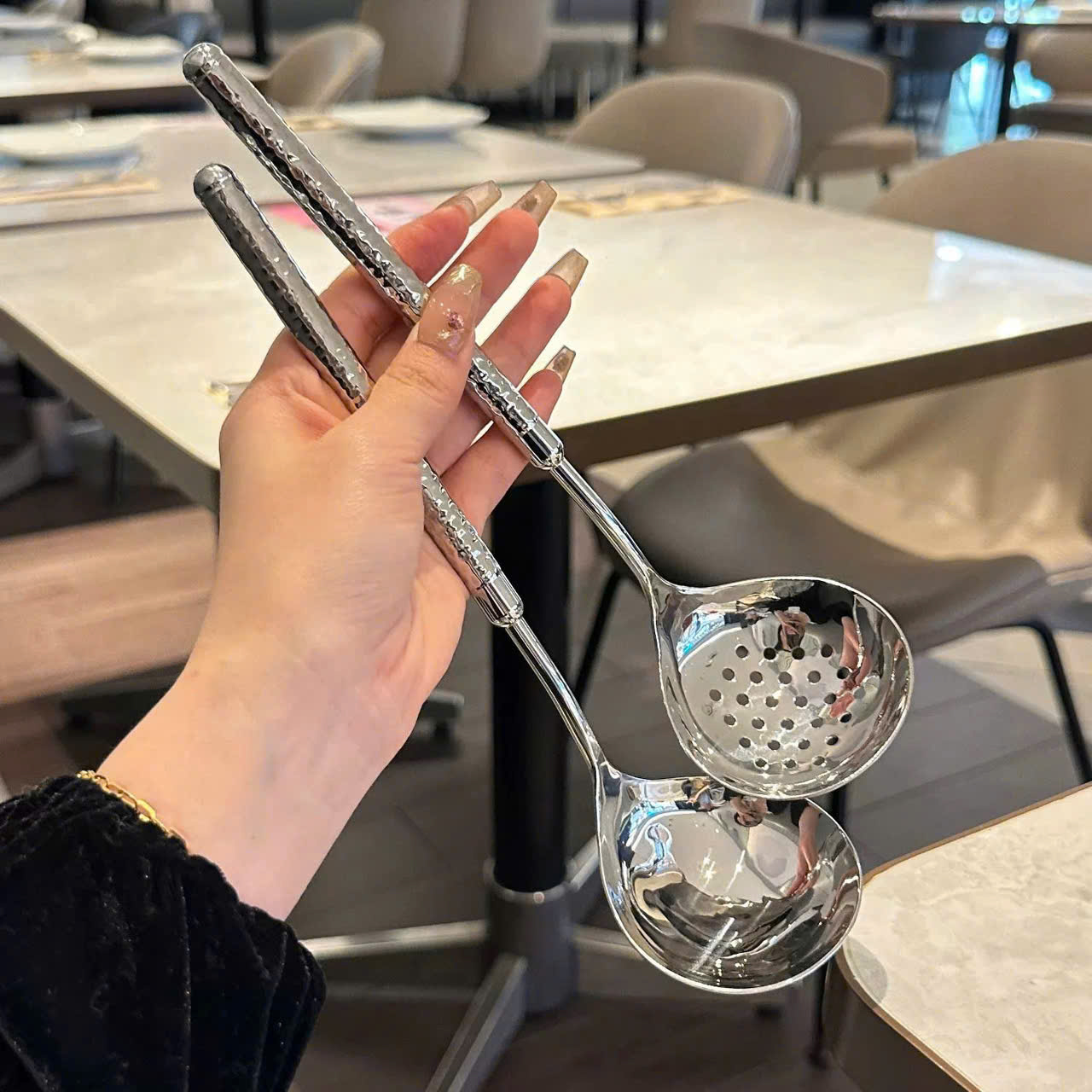 Tay cầm đầm chắc, cân đối, múc nhẹ mà vẫn cảm giác sang và xịn — một bộ muôi ưng ý nhất từ trước tới giờ luôn! 🏆