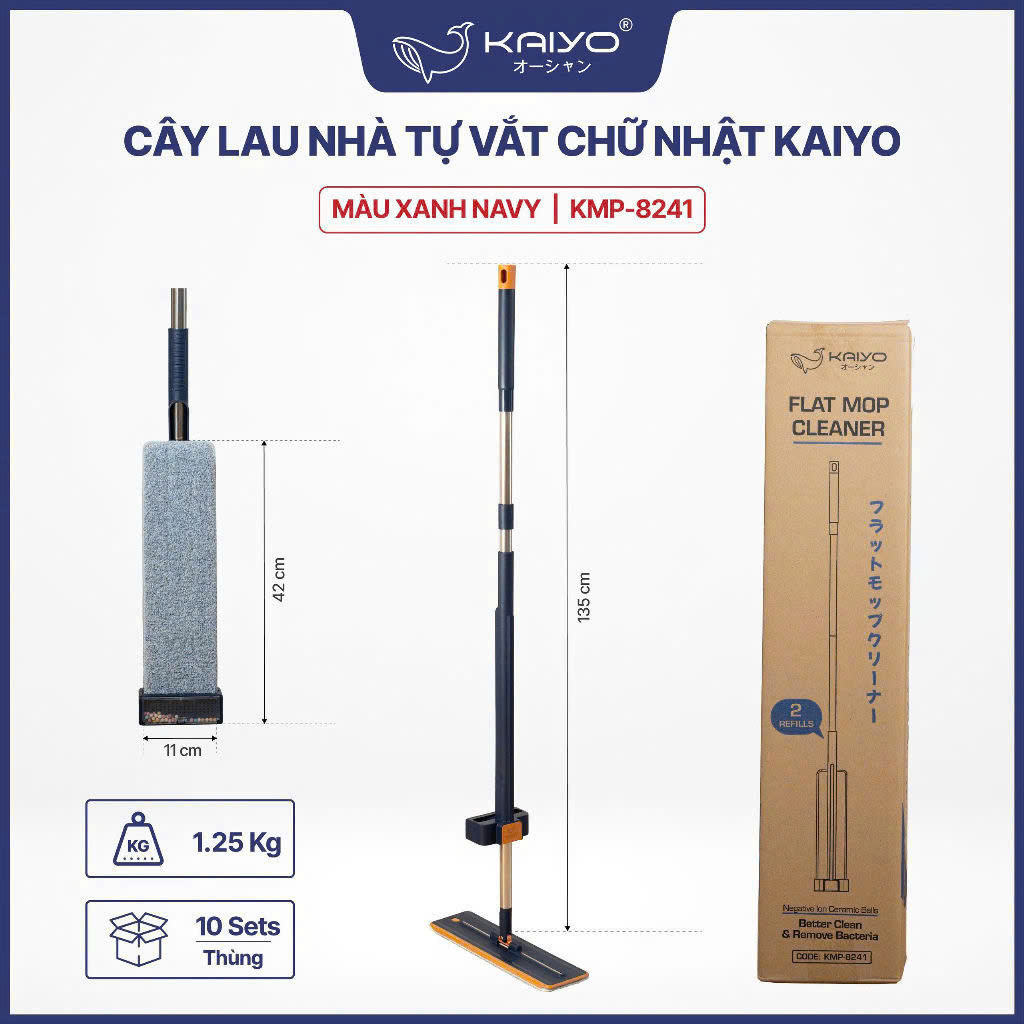 🐳🐳 Cây lau nhà tự vắt chứ nhật Kaiyo tích hợp gốm ion diệt khuẩn và gạt nước thông minh Kaiyo 🐳🐳