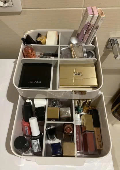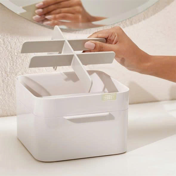 📦 Hộp đựng mỹ phẩm tất cả trong một là sự kết hợp của các ngăn sâu và nông cộng với một ngăn kéo lớn.