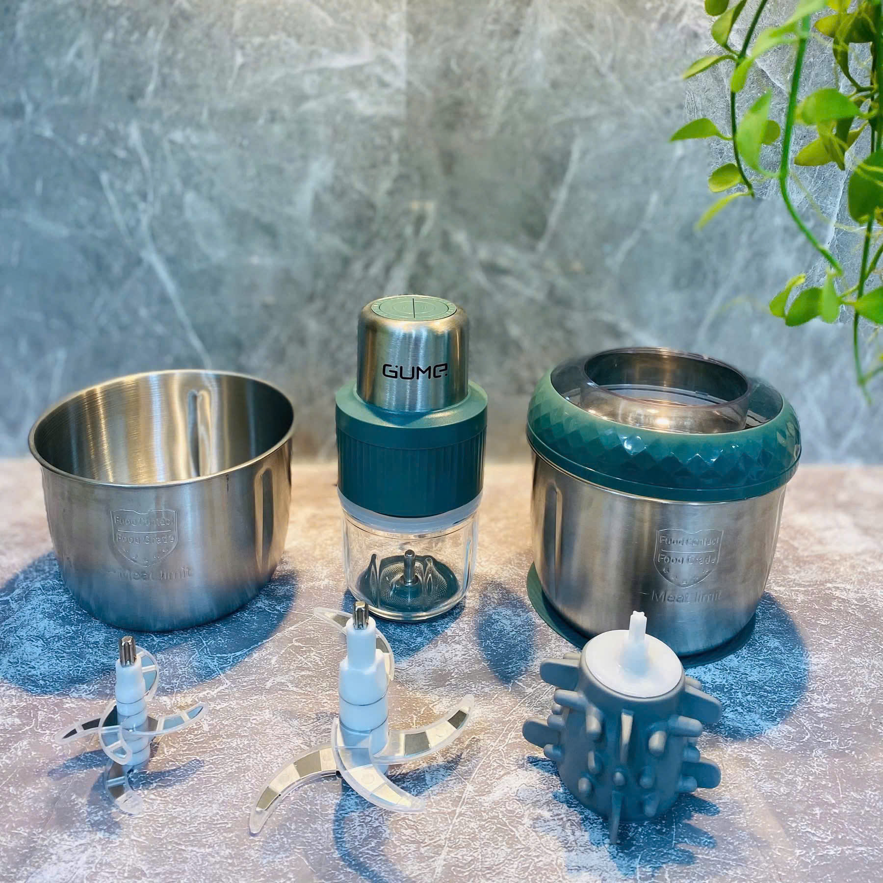 Quá xịn với bộ máy xay GUME KOREA với tận 2 cối inox, 1 cối thuỷ tinh, 1 trục silicon, 2 trục xay